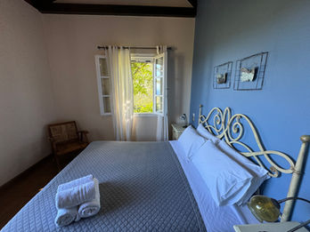 Old-fashioned wooden wardrobes, iron-framed beds, and soft textiles enhance the traditional island atmosphere, while modern comforts ensure a restful and convenient stay.